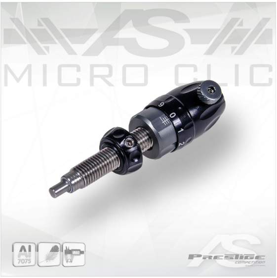 Le modèle PRESTIGE est un berger button robuste en aluminium 7075 anodisé et acier inoxydable, guidage calibré au centième.