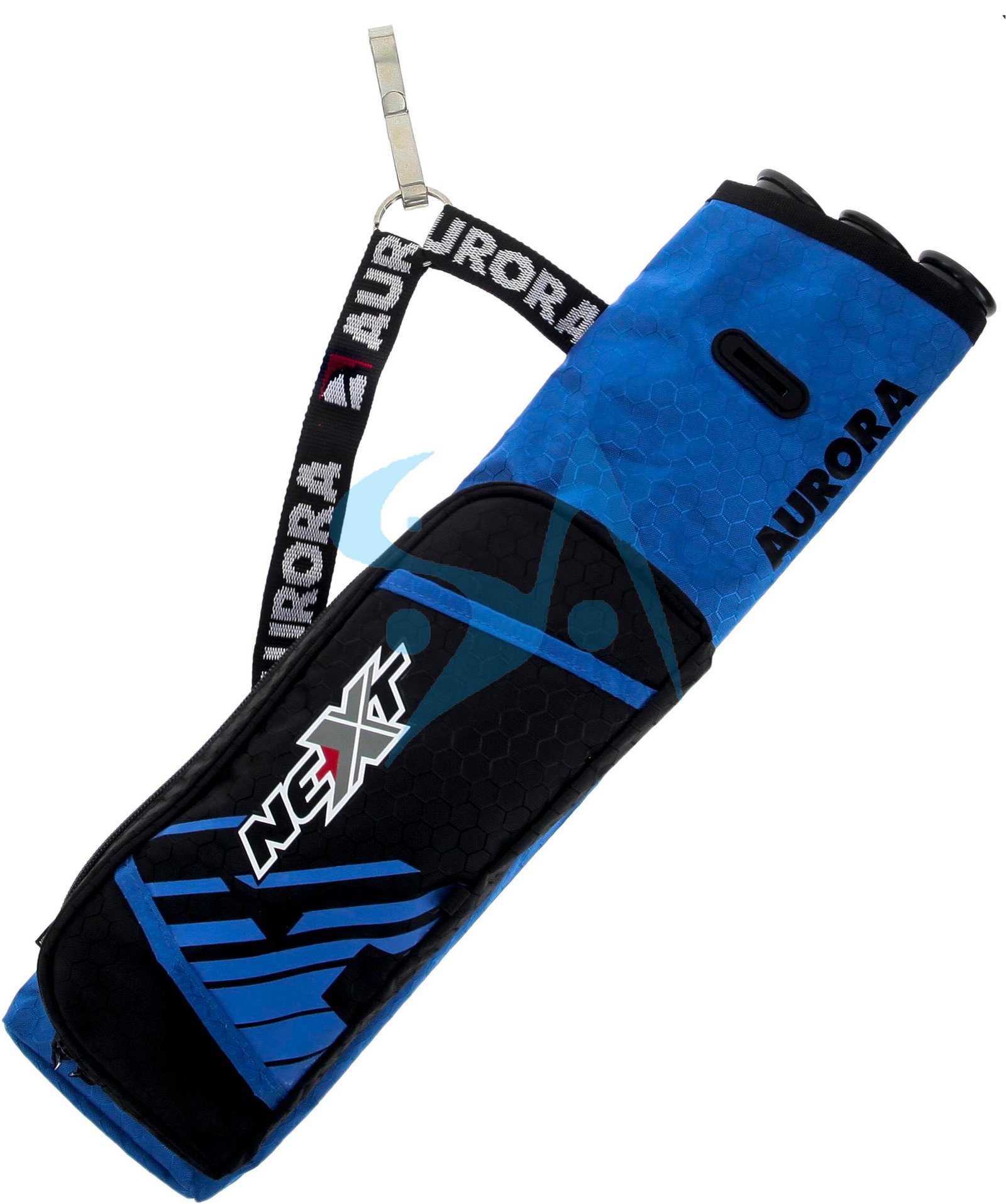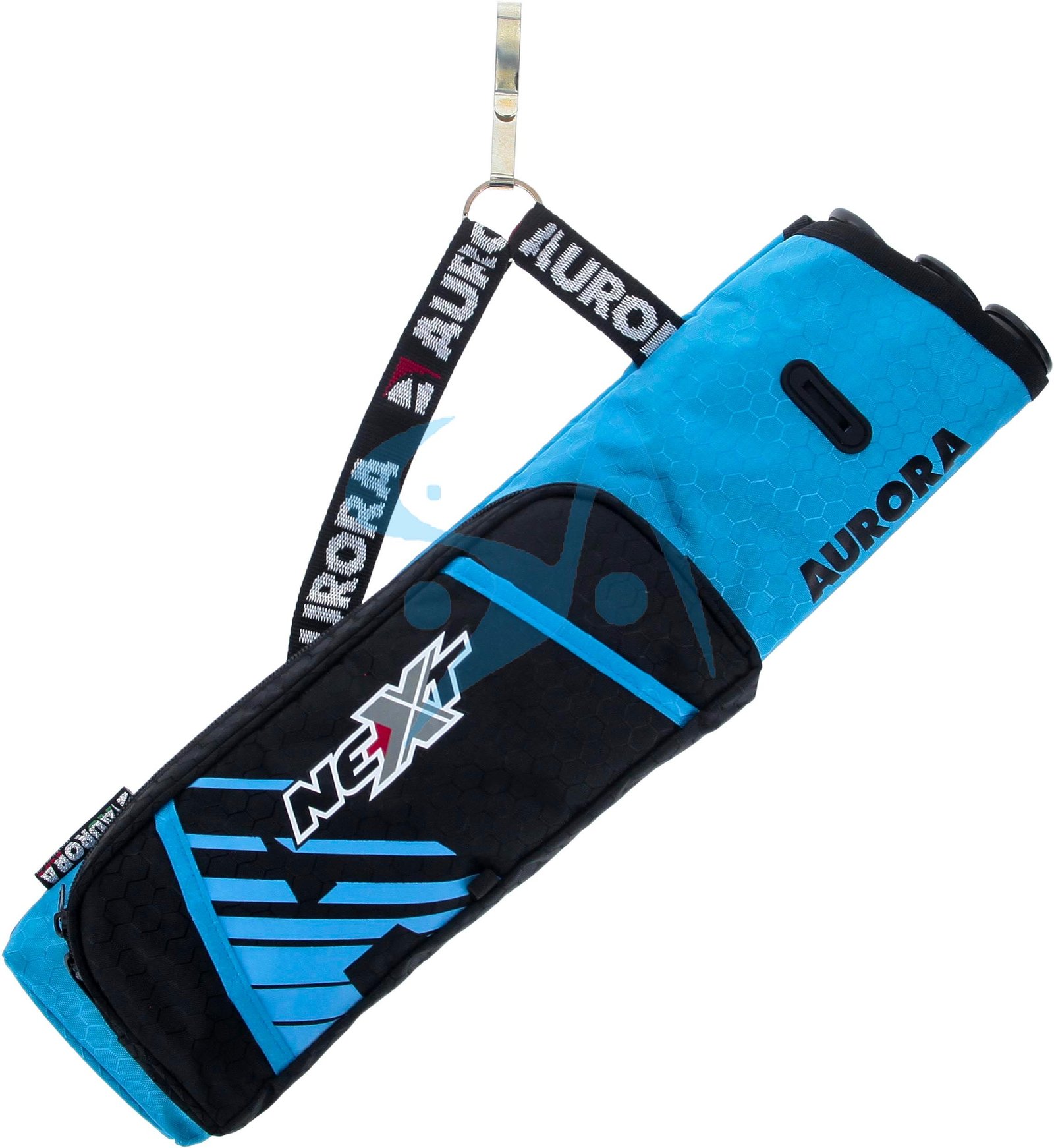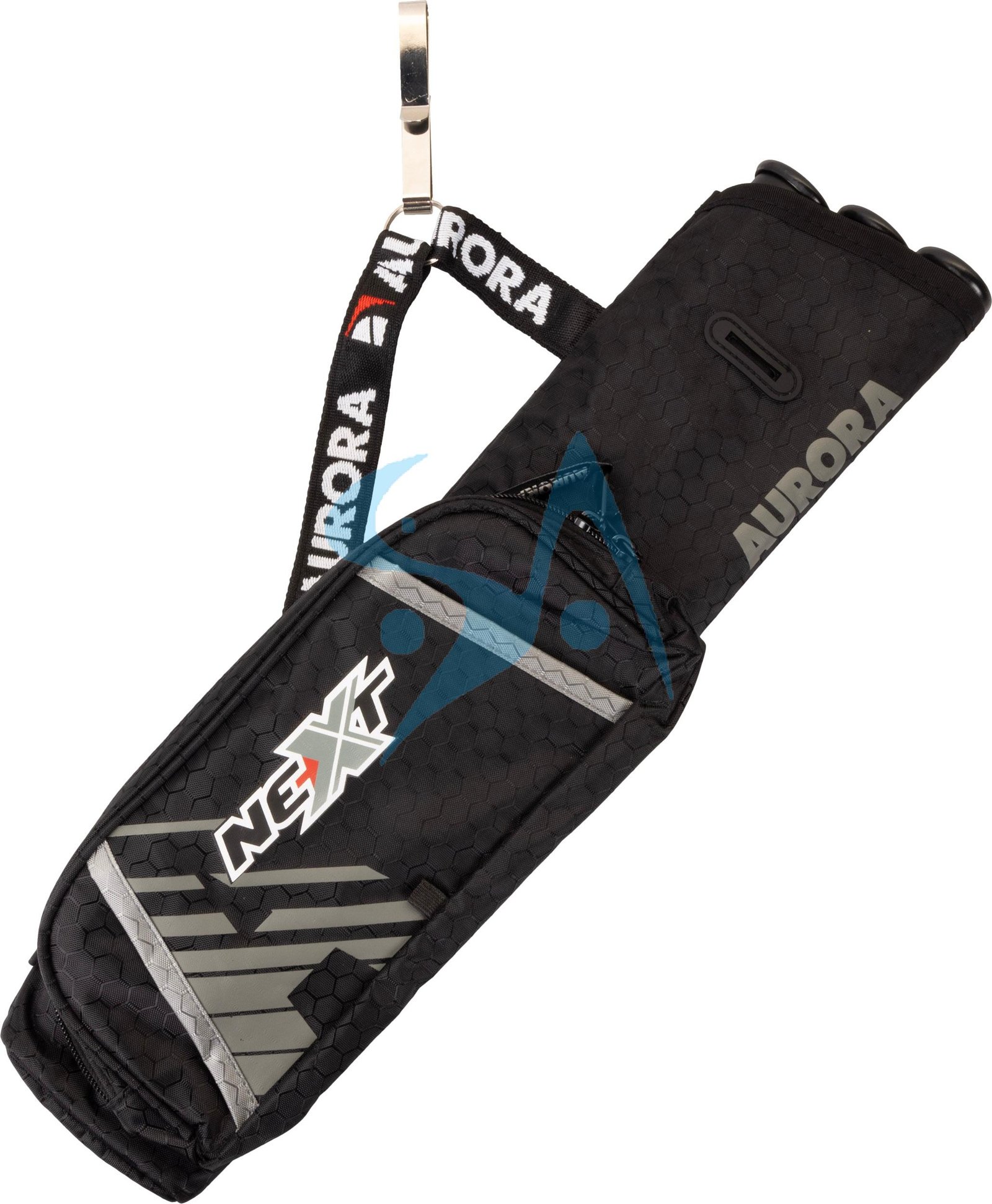 Le modèle NEXT est ambidextre grâce à son crochet. Il est équipé d’une poche de rangement pour le petit matériel et de trois séparateurs de flèches.