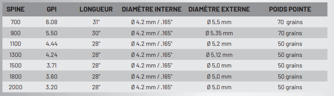 Le modèle ELEMENT est une flèche complète, en carbon ; adaptée pour les arcs nus, les enfants et les faibles puissances.